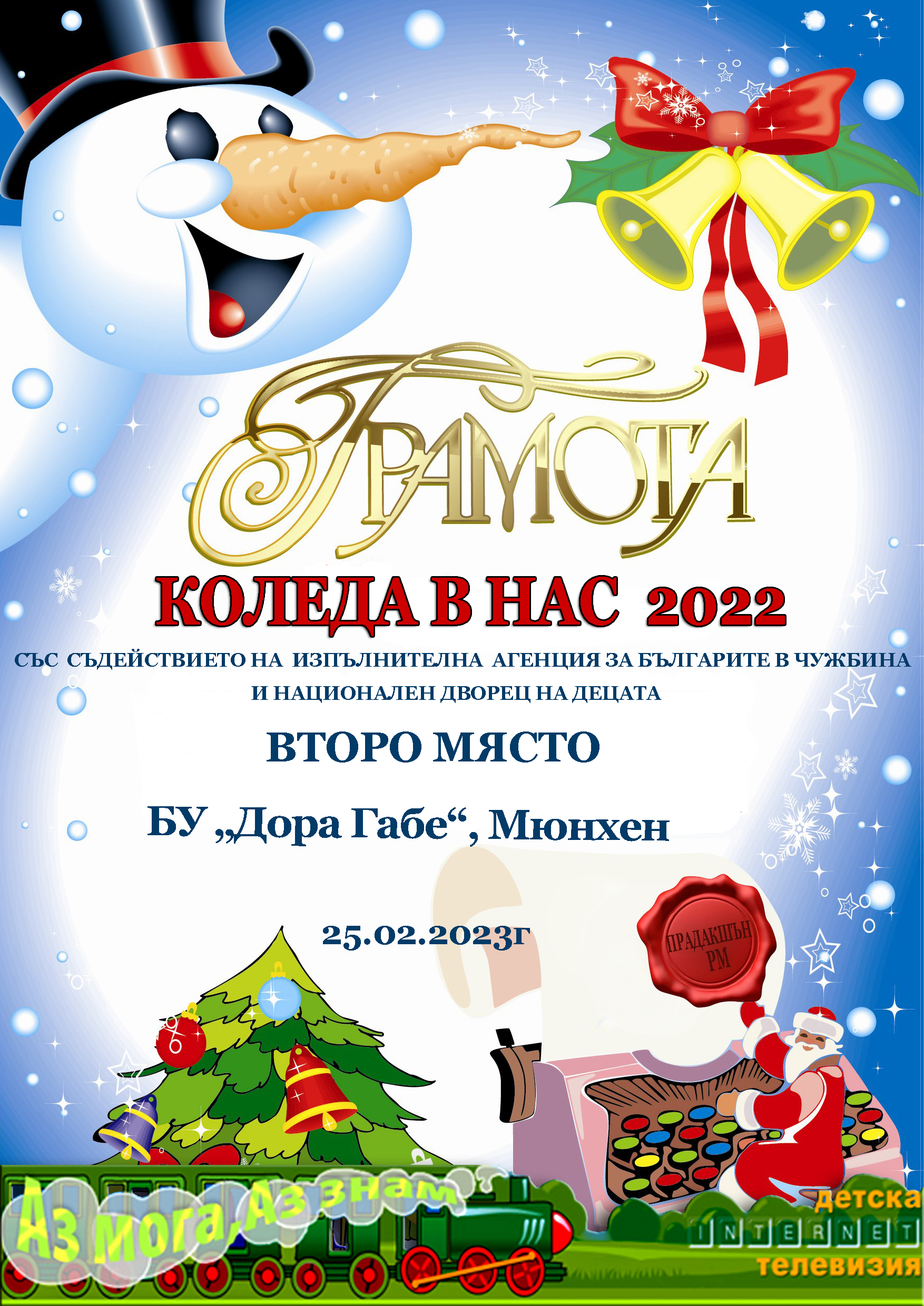 „Коледа в нас“ – 2022 г.Интернет ТВ „Аз мога, аз знам“Второ място