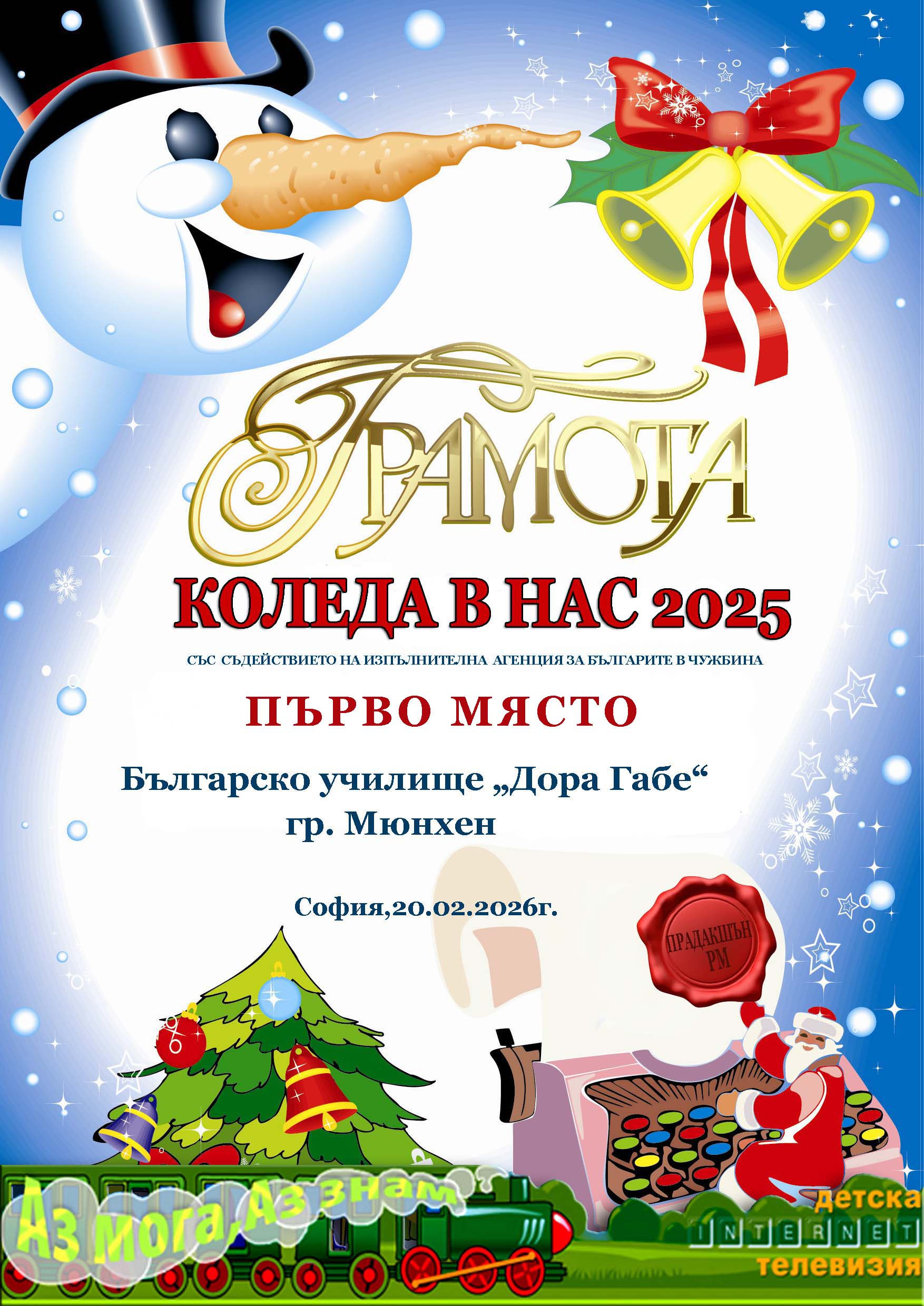 „Коледа в нас“ – 2025 г.Интернет ТВ „Аз мога, аз знам“Първо място