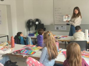 Особено вълнуваща беше и срещата ни с писателката Васи Бахчеванска, която ни гостува, прочете приказка от книгата си „Стъпчици“ и щедро я подари на училището. ![]()